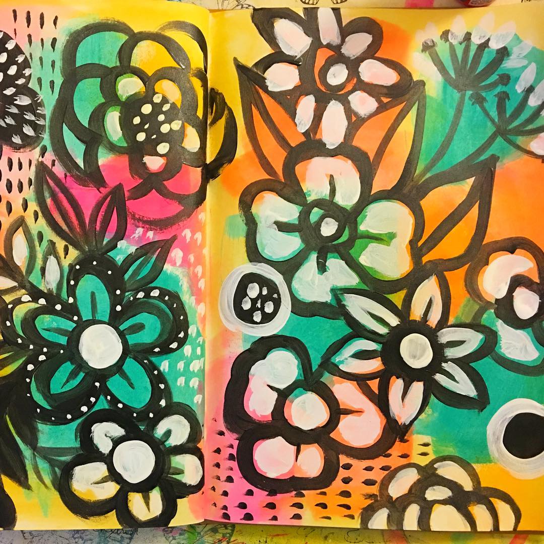 Daily Art Journaling ~ Day 118 Neon florals