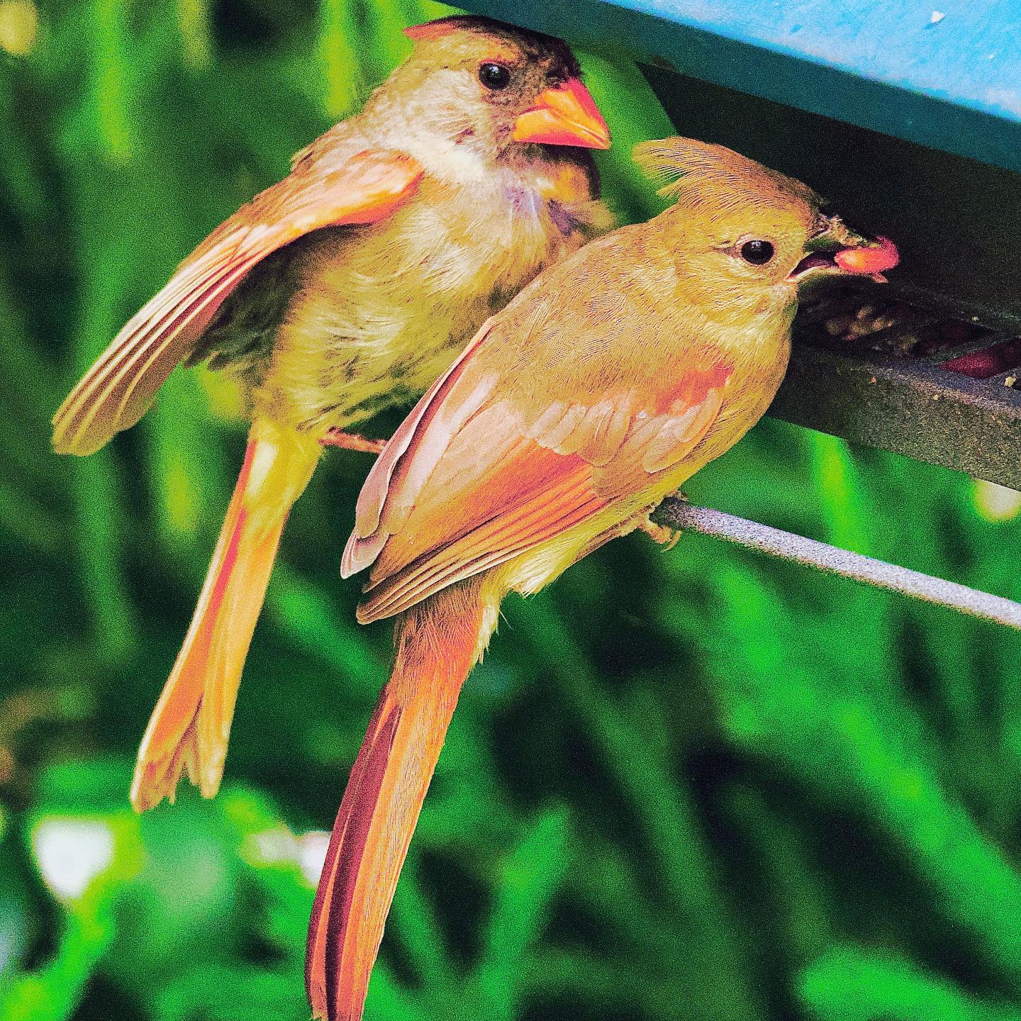 The mom escorted the fledgling to the feeder a few days ago and helped her with her meal. She watched as her little girl nibbled on a tiny seed. The next day the dad came and checked the feeder first. The mom flew in for a quick bite only after that. The little girl looked…